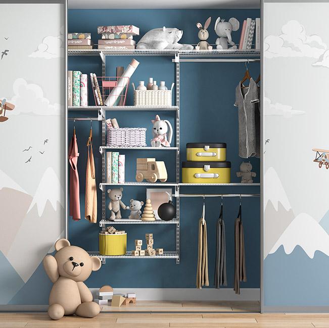 Гардеробная система ПРАКТИК HOME идеально впишется в детскую комнату, создавая безопасное и удобное пространство для хранения.