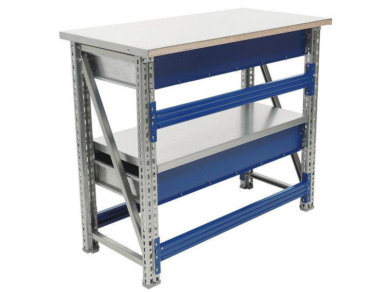 - Возможность дополнить верстак полкой (нагрузка 100 кг) и выдвижным ящиком (нагрузка 30 кг).